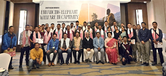 he programme was designed to strengthen the knowledge base and technical capacity of elephant custodians, mahouts, veterinarians, and field personnel involved in the management of captive elephants, particularly in the North-Eastern region of India. A total of 33 participants representing Assam, Arunachal Pradesh, Meghalaya, Tripura, Manipur, Nagaland, and Mizoram took part in the workshop.